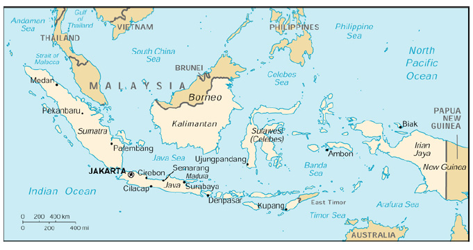 พื้นที่ : 1,890,754 ตารางกิโลเมตร เป็นประเทศหมู่เกาะที่มีขนาดใหญ่ที่สุดในโลก ประกอบด้วยเกาะใหญ่น้อย กว่า 17,508 เกาะ รวมอยู่ในพื้นที่ 4 ส่วน คือ